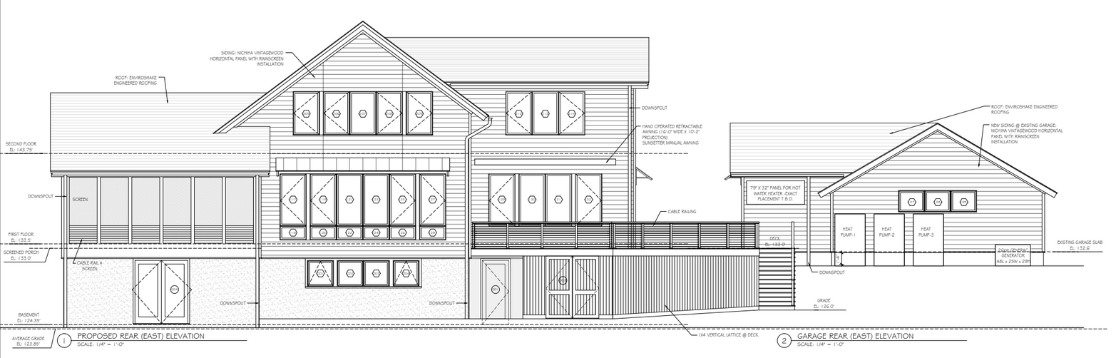 Next for us is a review of the initial proposal for the landscaping that we plan on submitting to the natural resources commission as part of the approval process. They also get all the specifications we have prepared (and although the NRC does not care about fixtures, they do care about downspouts, foundations, septic systems, everything external to the house and counting the rooms.